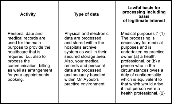 A Privacy Notice is a statement by Mr. Khalid Ayoub to patients, service users, visitors, carers, the public and staff that describes how we collect, use, retain and disclose personal information which we hold as a consequence of the operation of our website (www.shoulderandknee.net , BMI Ross Hall Hospital and Nuffield Health Glasgow Hospital), our newsletters and the provision of our products and services. It is sometimes also referred to as a Privacy Statement, Fair Processing Statement or Privacy Policy. This privacy notice is part of our commitment to ensure that we process your personal information/data fairly and lawfully.